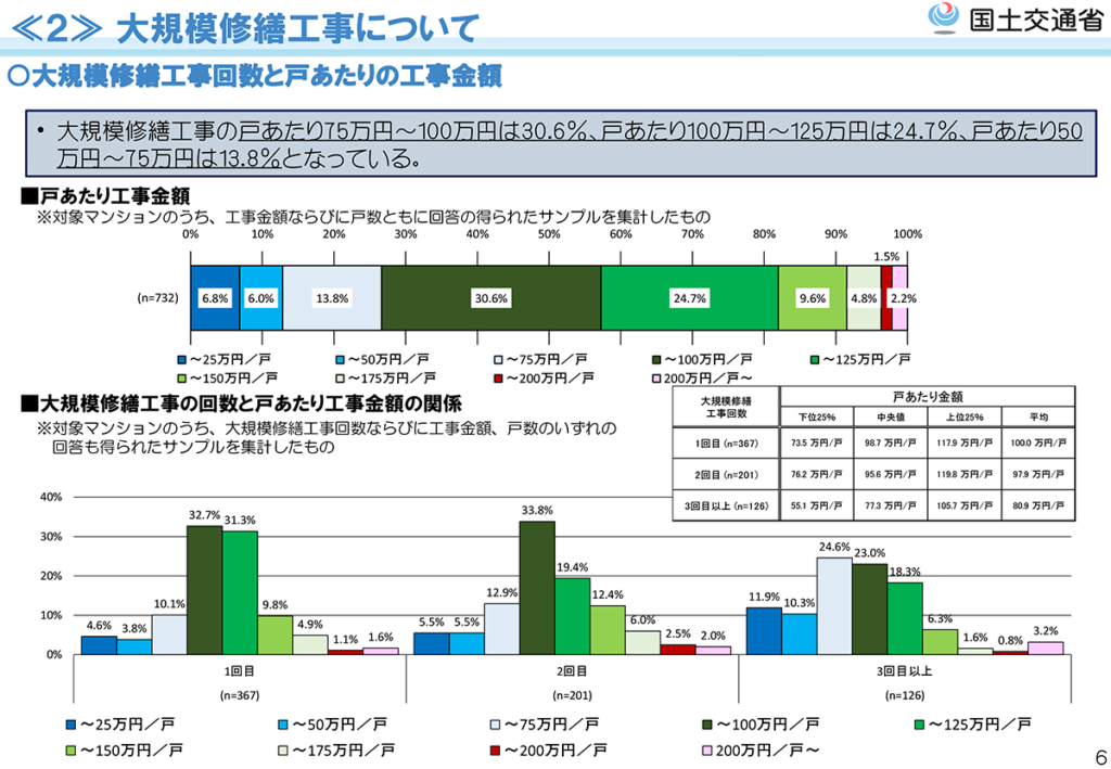 国土交通省が実施した大規模修繕工事に関する実態調査によると、以下のような調査データがありました。
