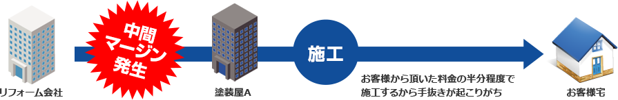 中間の塗装業者を挟むから高い。